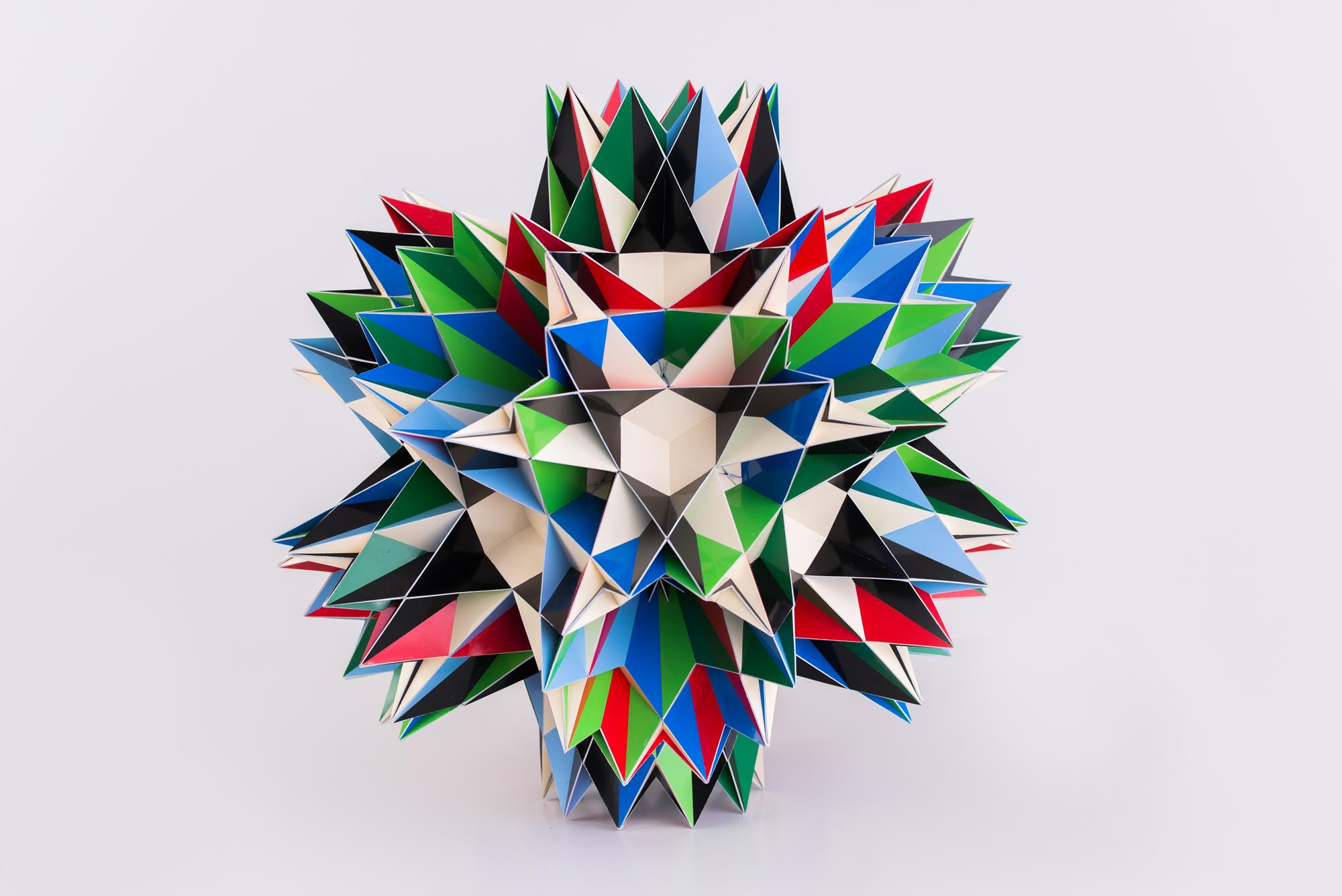 This model is actual a compound of two Great Inverted Retrosnub Icosidodecahedra. It isn't my habit to build big complex models, but when I heard that Fr. Magnus Wenninger had passed away on February 17, 2017, slowly the idea of building one complex model as a tribute to him.