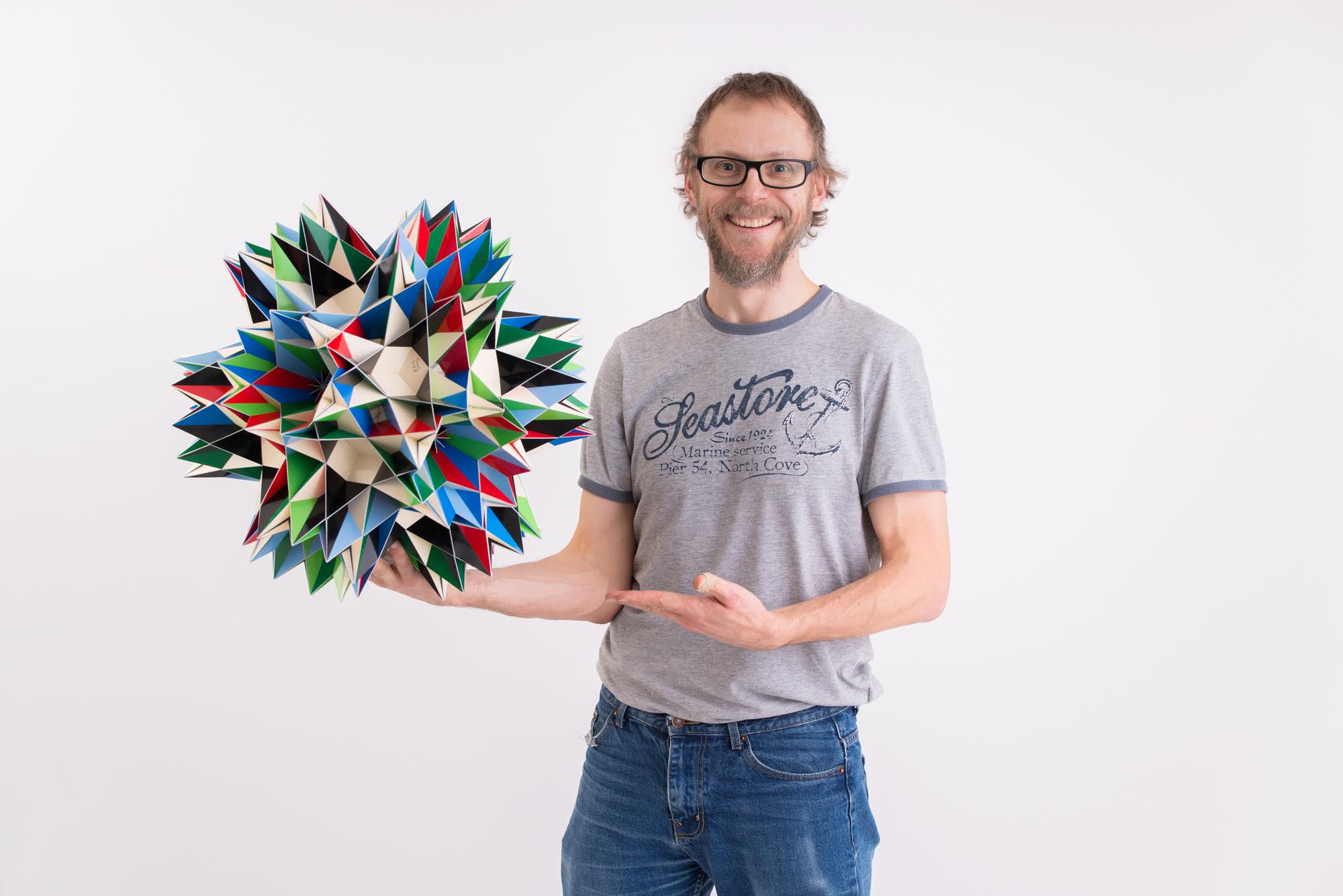 The first book I ever bought about polyhedron models was Magnus Wenninger's book "Polyhedron Models". In the end of the book were some models that were absolutely stunning. I couldn't comprehend how it was possible that someone could build that. I thought it would be fitting to try to build one of these models: the the Great Inverted Retrosnub Icosidodecahedron. But then my eye fell on the compound of two of these. Apparently it had only be built twice before: One by Piotr Pawlikowski and one by Jonathan Bowers.